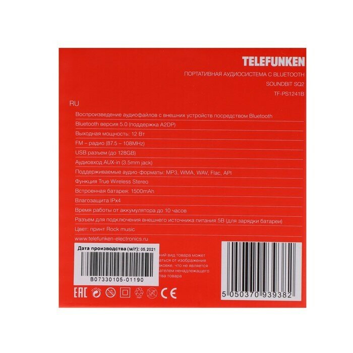 Портативные аудиосистемы Telefunken TF-PS1241B(Rock) TF-PS1241B(Rock) .