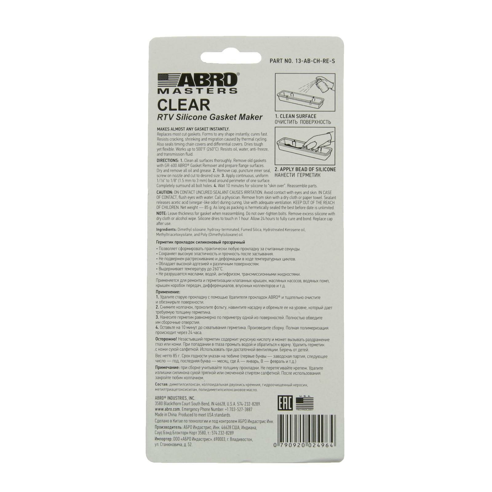 Abro Masters Герметик Прокладок Прозрачный 13-Ab-Ch-Re-S 85Гр. ABRO арт. 13ABCHRES