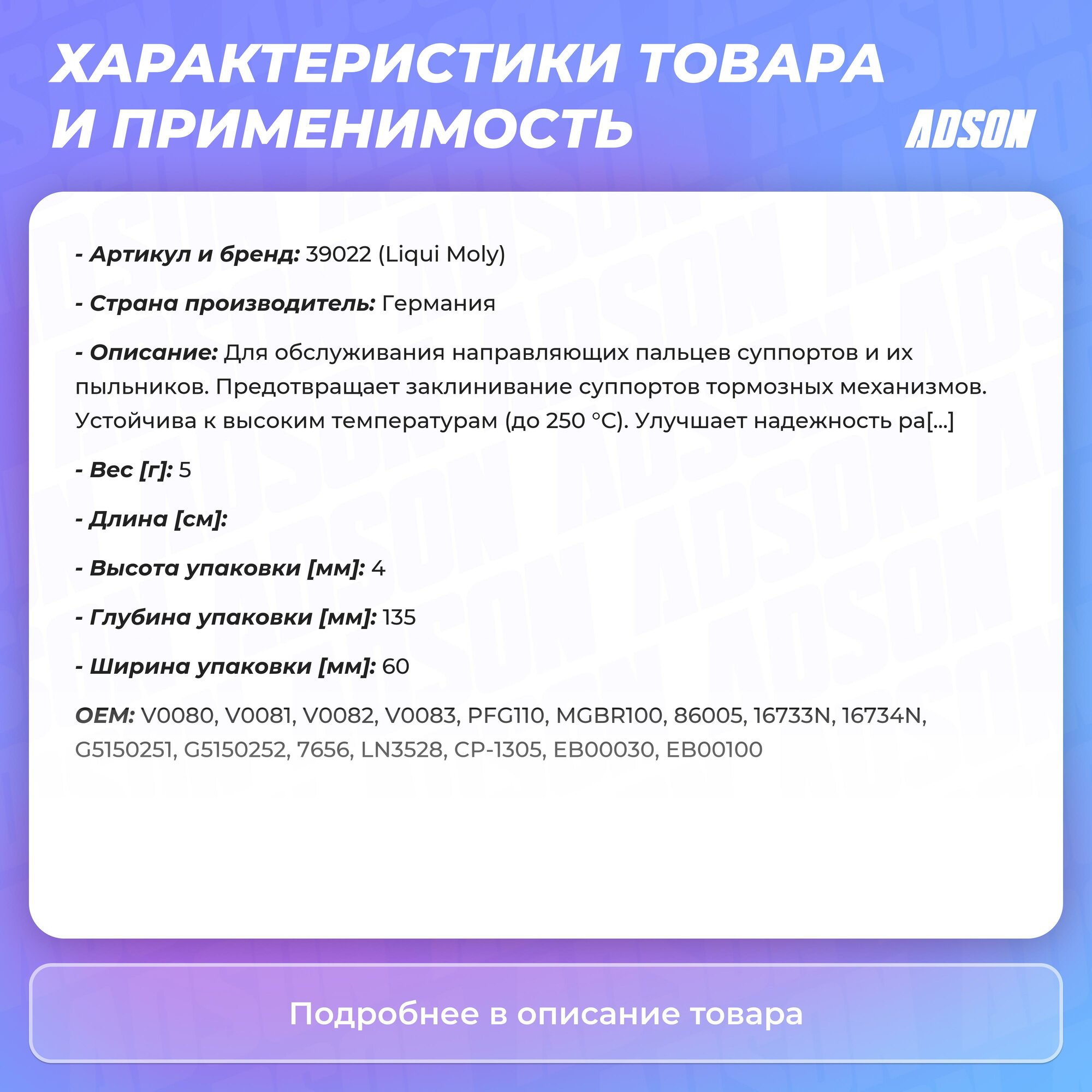 Смазка Для Напр. Суппорта Liquimoly Bremsenflussigkeit (0,005кг) Liqui Moly 39022 Liqui moly арт. 39022