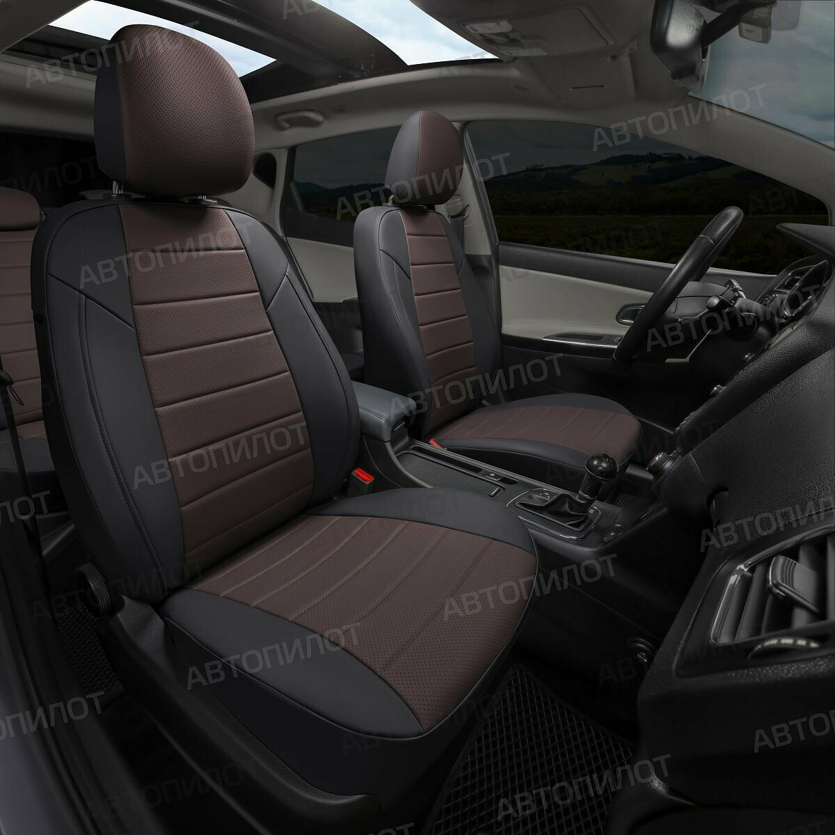 Комплект чехлов Автопилот Экокожа Chevrolet Cobalt с 11г. / Ravon R4 16г. Черный + Коричневый