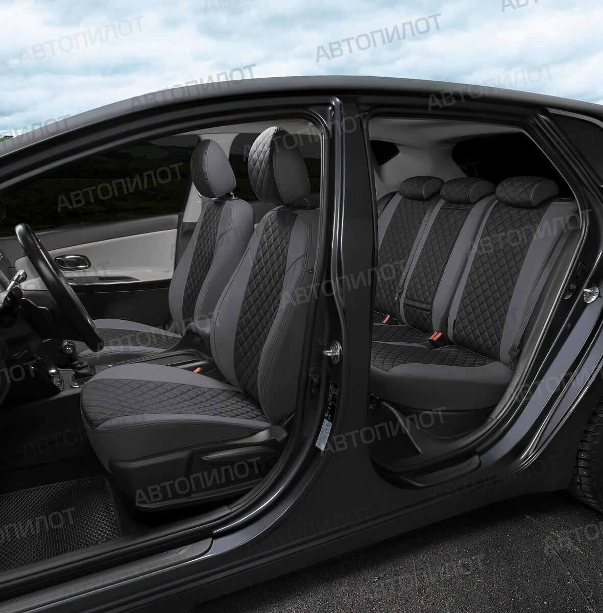 Комплект чехлов Автопилот Ромб Chevrolet Cobalt с 11г. / Ravon R4 16г. Черный + Темно-серый