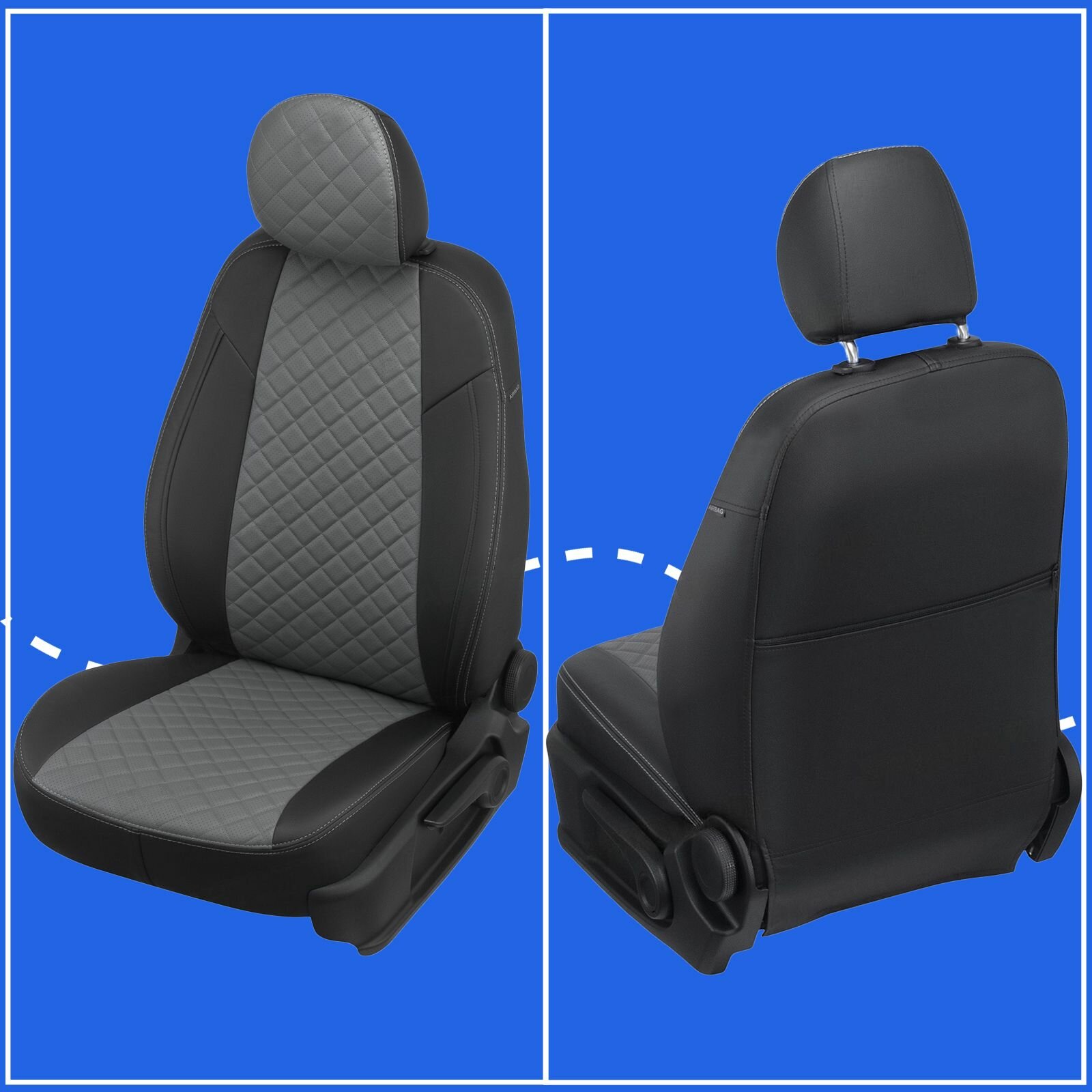 Комплект чехлов Автопилот Ромб Mitsubishi L200 IV c 07-13г. Серый + Черный