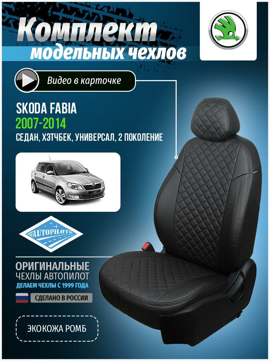 Купить Чехлы для Skoda Fabia 2 2007-2014 Автопилот Черный Экокожа с ромбом sk-fa-f07-chch-r
