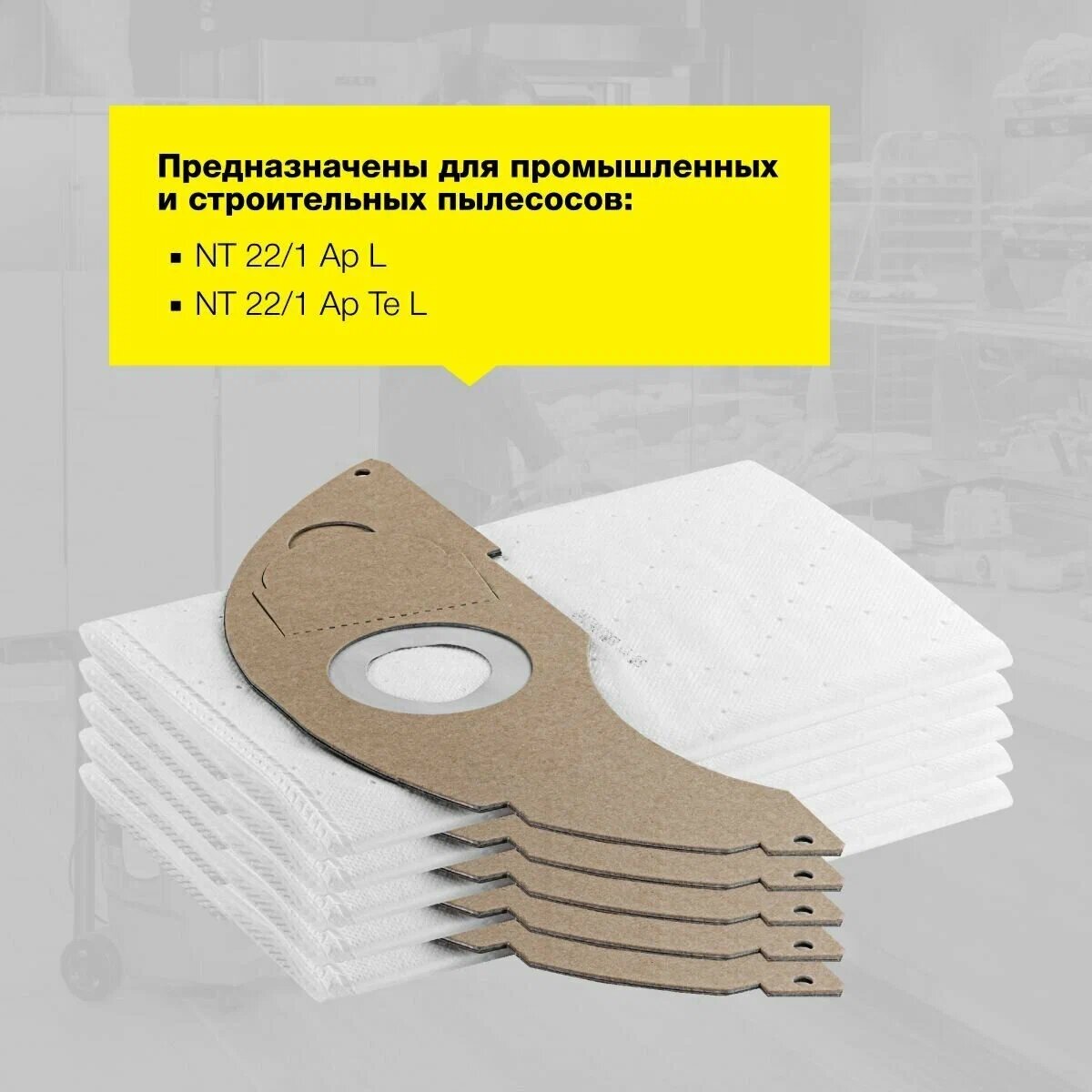 Фильтр мешки для пылесосов влажной и сухой уборки Karcher NT 22/1 2.889-217.0 из нетканого материала, 5 шт