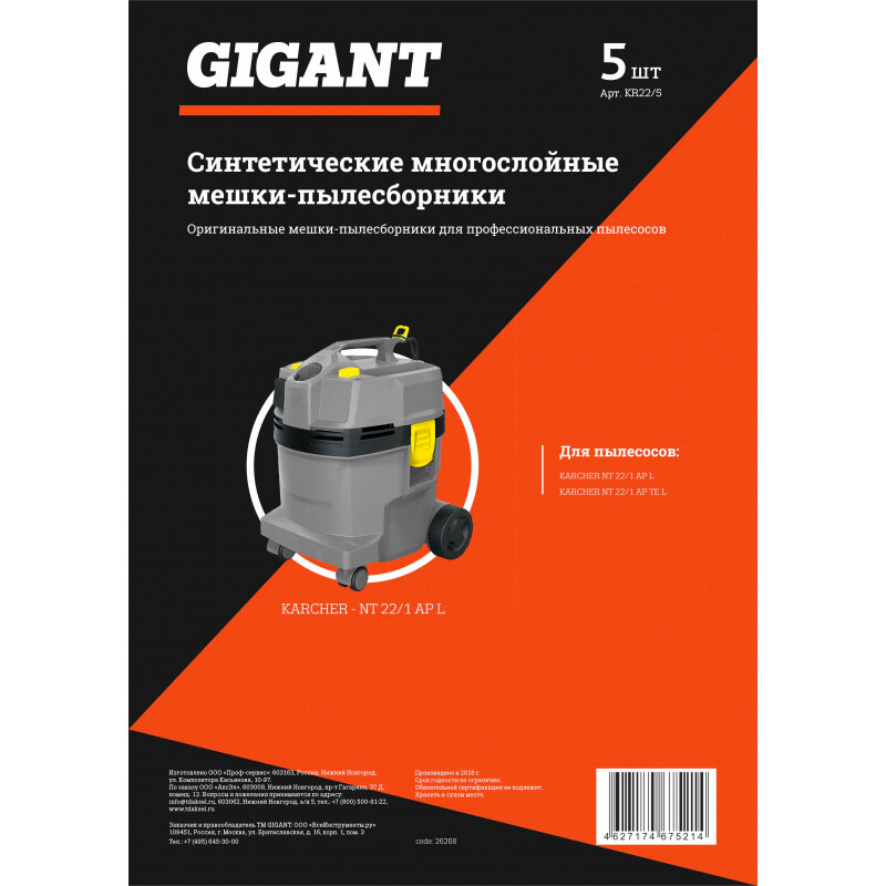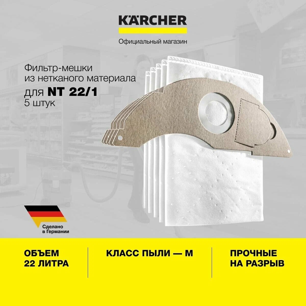 Купить Мешки для сбора пыли KARCHER 5 штук, нетканые, пылесосы NT 22/1 Ap, 2.889-217.0