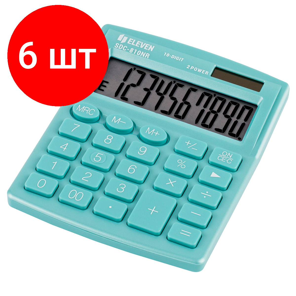 Купить Комплект 6 шт, Калькулятор настольный Eleven SDC-810NR-GN, 10 разрядов, двойное питание, 127*105*21мм, бирюзовый