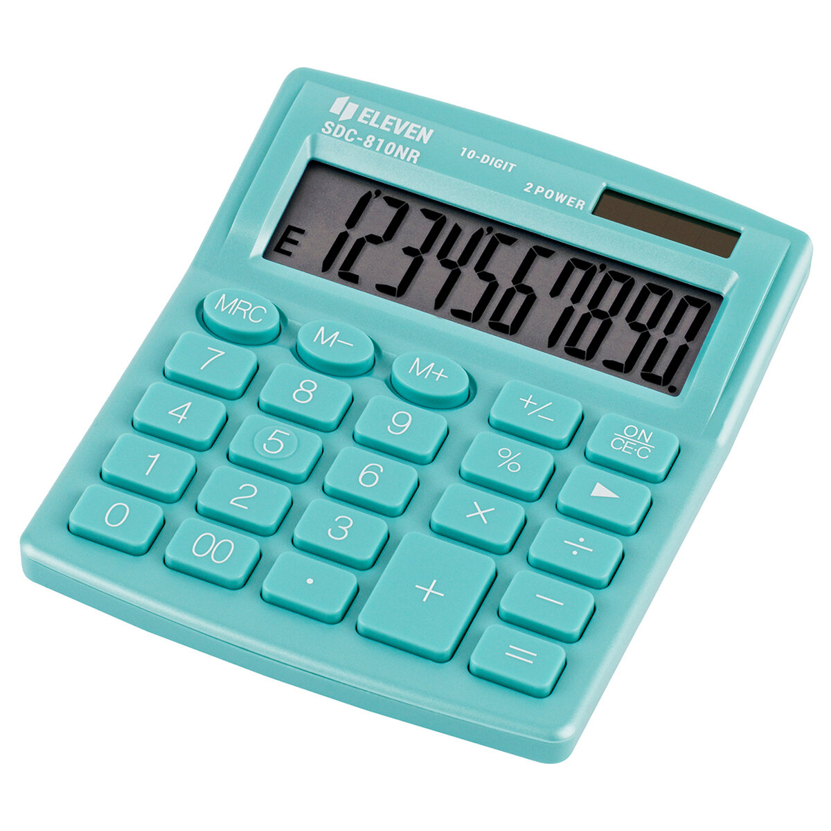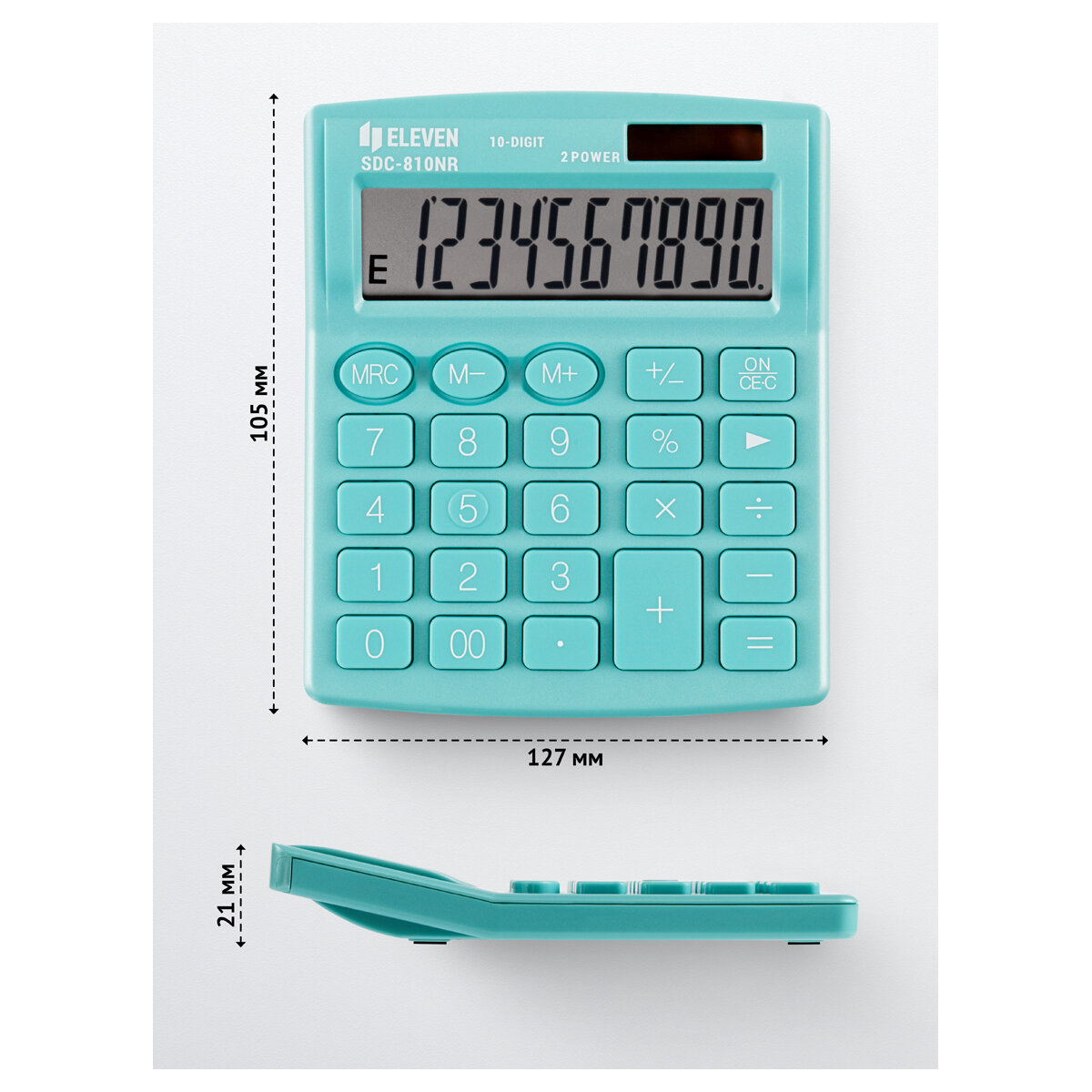 Калькулятор Eleven настольный, 10 разрядов, двойное питание, 127х105х21 мм, бирюзовый (SDC-810NR-GN)