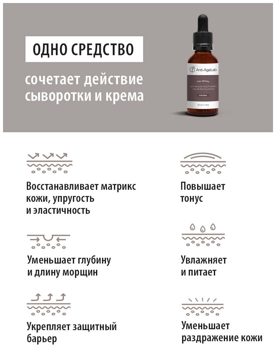 От морщин крем-сыворотка неинвазивная мезотерапия и биоревитализация для мужчин, для лица, области вокруг глаз и шеи 30 мл.