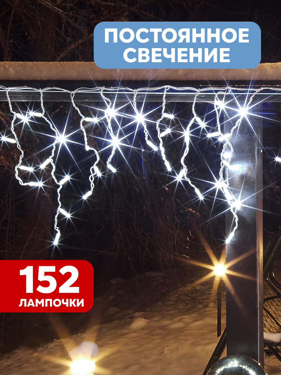 Гирлянда Айсикл (бахрома) светодиодный, 4,8 х 0,6 м, белый провод, 230 В, диоды белые, 152 LED