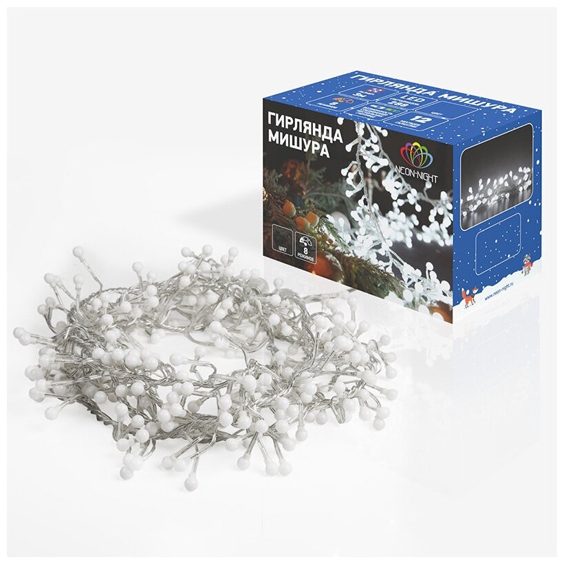 Гирлянда Neon-Night 303-605 Мишура LED 3 м прозрачный ПВХ 288 диодов цвет белый