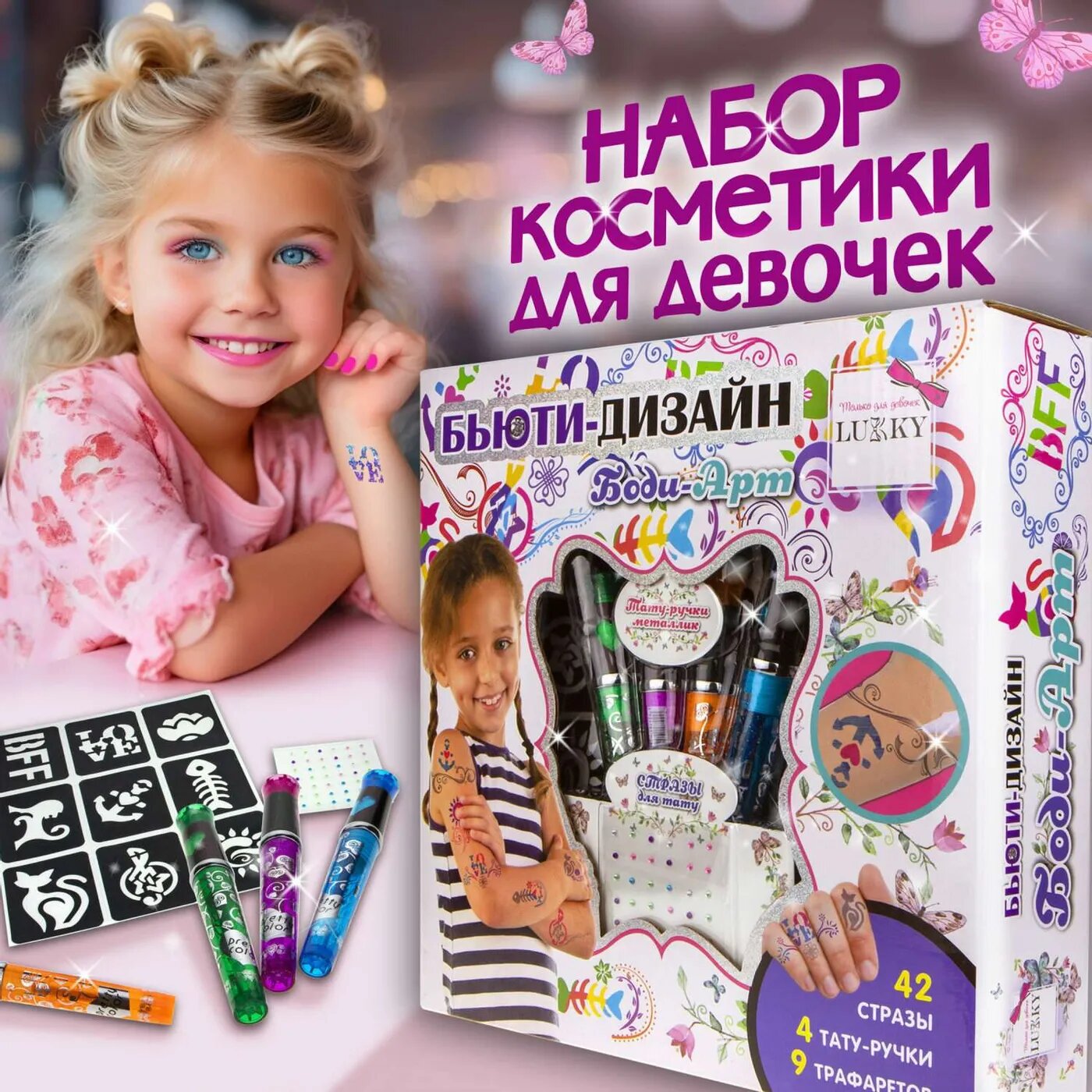 Набор Боди-Арт с тату-ручками,трафаретами,стразами Lukky Т19445