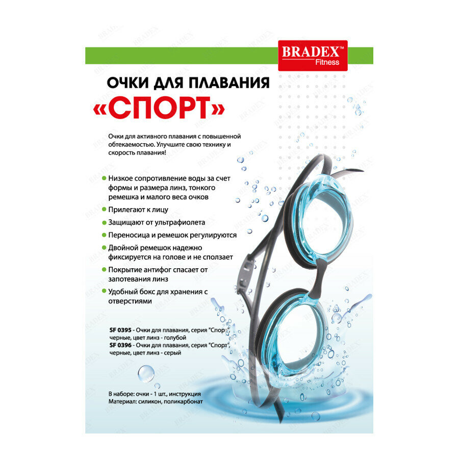 Очки для плавания Bradex, серия "Спорт", черные цвет линзы - голубой .