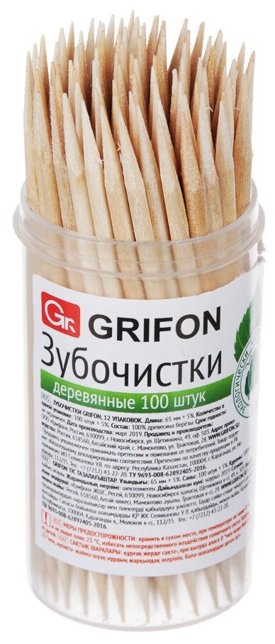 Зубочистки Grifon деревянные 400-002, 100 шт