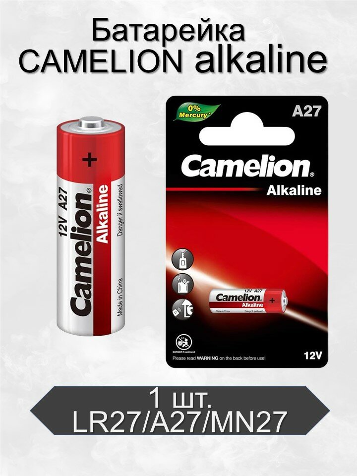 Элемент питания алкалиновый для пультов сигнализаций LR27A Mercury Free A27-BP1 12В BL-1 (блист.1шт), CAMELION 12829 (1 упак)
