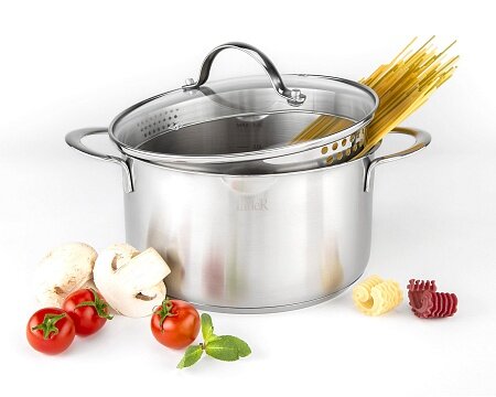 | Плюсы: | Подходит для индукционной панели. Классная крышка, удобно сливать. |