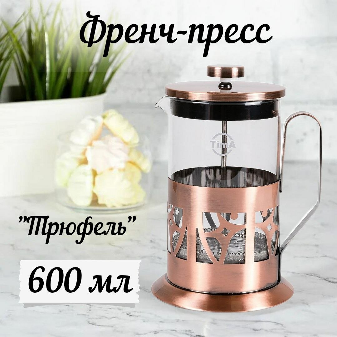 арт. FA-600 Френч-пресс TimA "трюфель" 600мл. нержавеющая сталь, боросиликатное стекло, медь