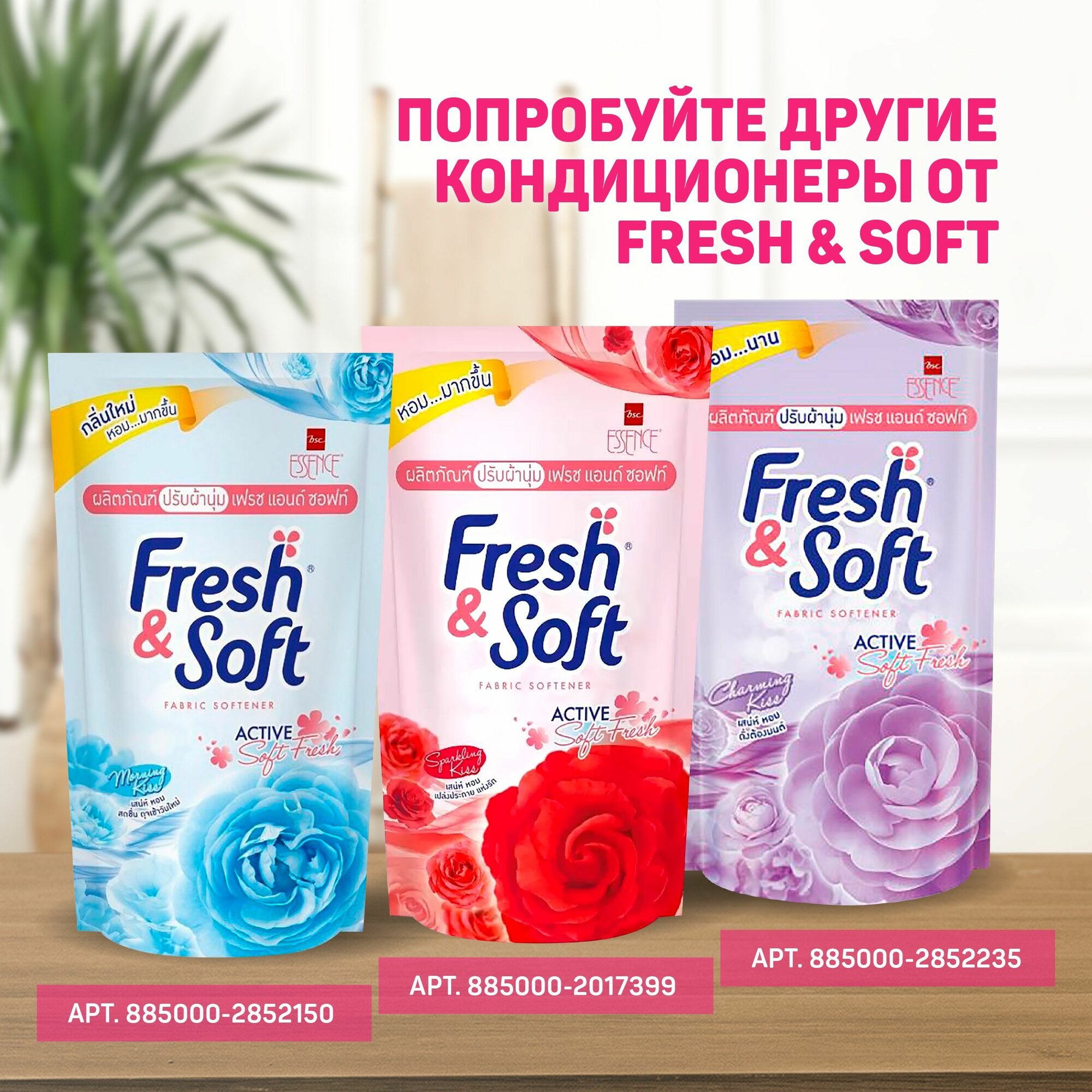 LION THAILAND Fresh&Soft Кондиционер для белья парфюмированный Сладкий Поцелуй 600 мл сменный блок
