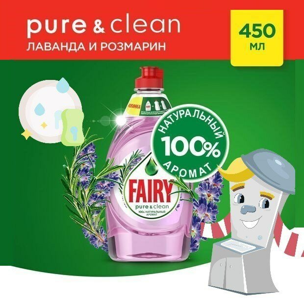Средство для мытья посуды Fairy Pure&Clean, Лаванда и Розмарин, 450 мл