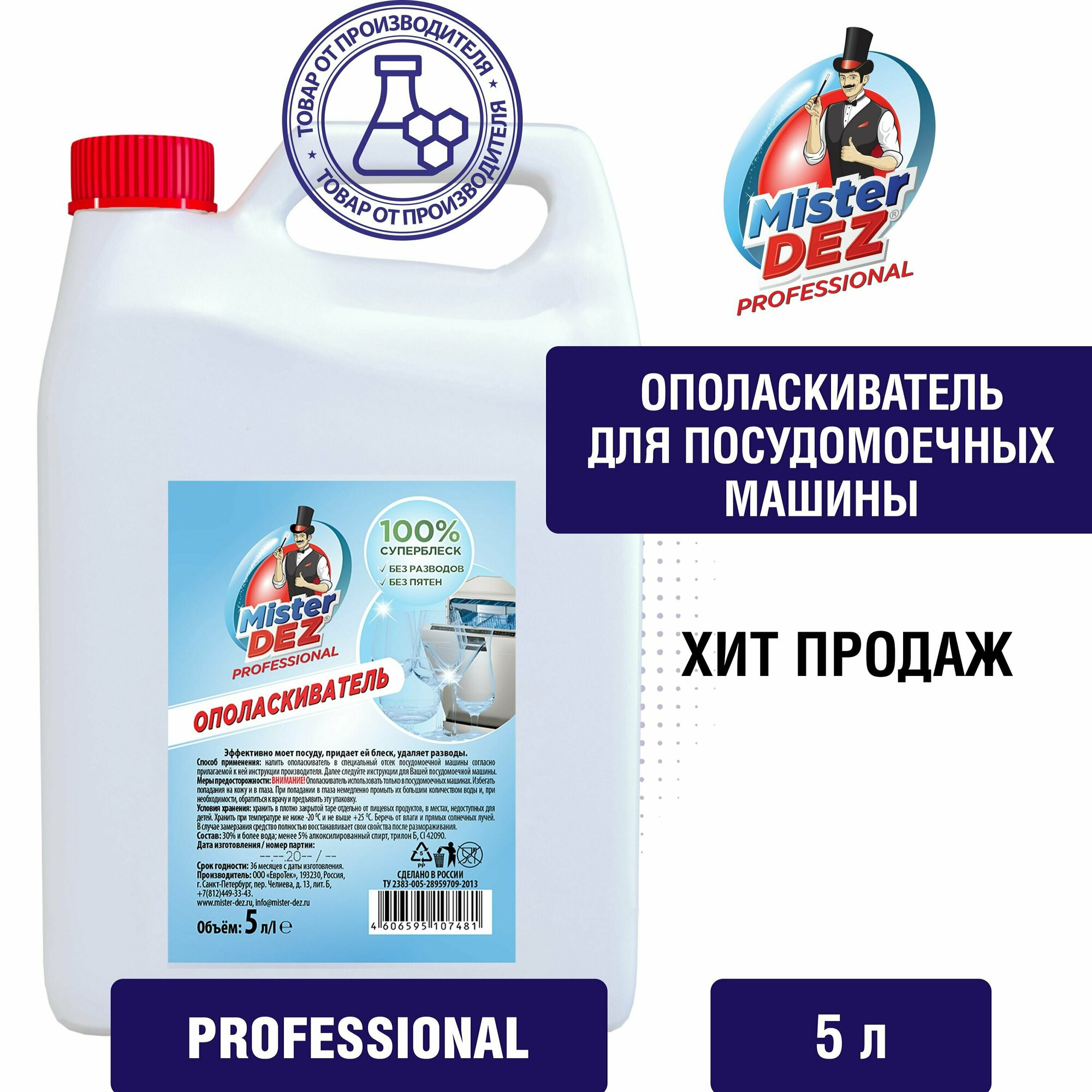 СохранитьОполаскиватель для посудомоечной машины Mister Dez PROFESSIONAL, 5 л интересное: