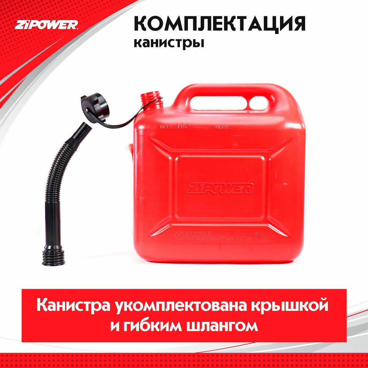 Канистра для топлива красная ZIPOWER 10л. PM4293 ZIPOWER PM4293 | цена за 1 шт