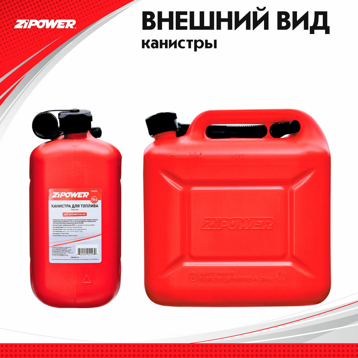 ZIPOWER PM4293 Канистра пластик 10 л красная Zipower 1шт
