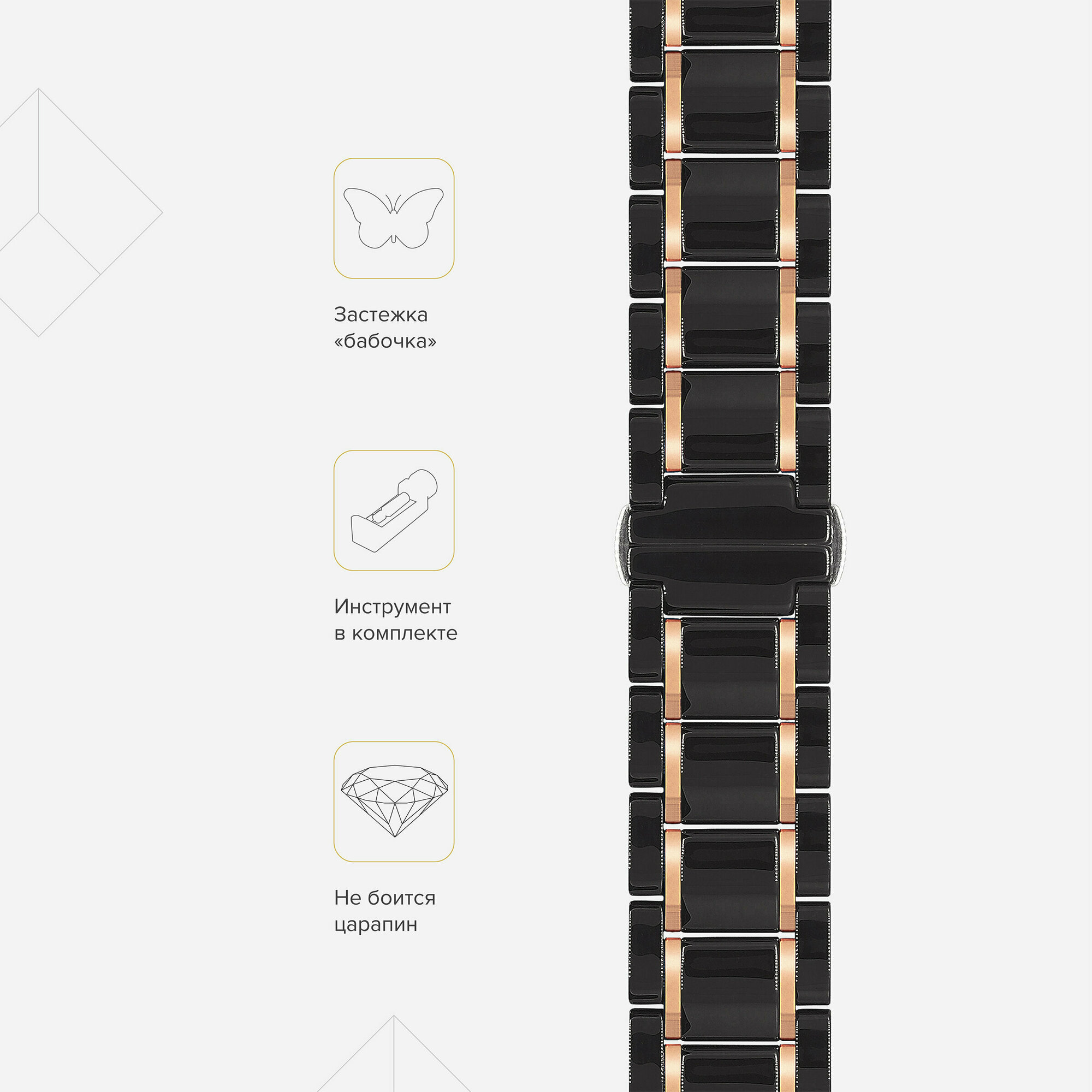 Купить Универсальный керамический ремешок для часов 22 mm LYAMBDA LIBERTAS DSG-09-22-BG Black/Rose Gold