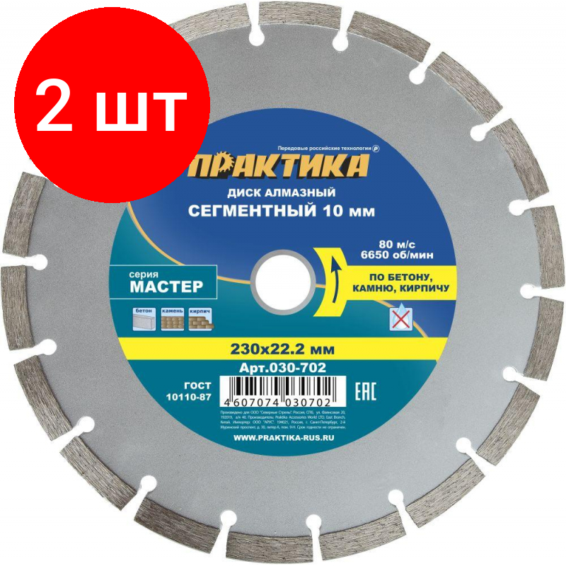 СохранитьКомплект 2 штук, Диск алмазный ПРАКТИКА Мастер сегментный d230х22.2мм, сухой рез (030-702) интересное: