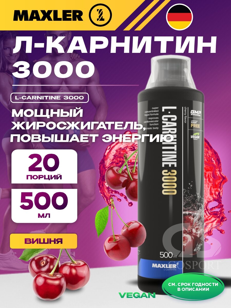 Купить Л-Карнитин Maxler L-Carnitine 3000 - Вишня, 500мл - Концентрированная жидкая формула - 3000 мг в порции