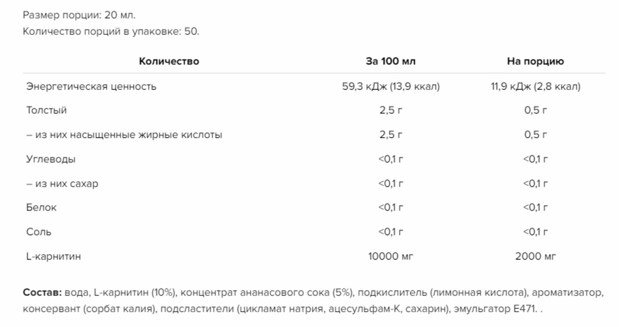 | Минусы: | Относительно небольшое содержание самого л-карнитина. |