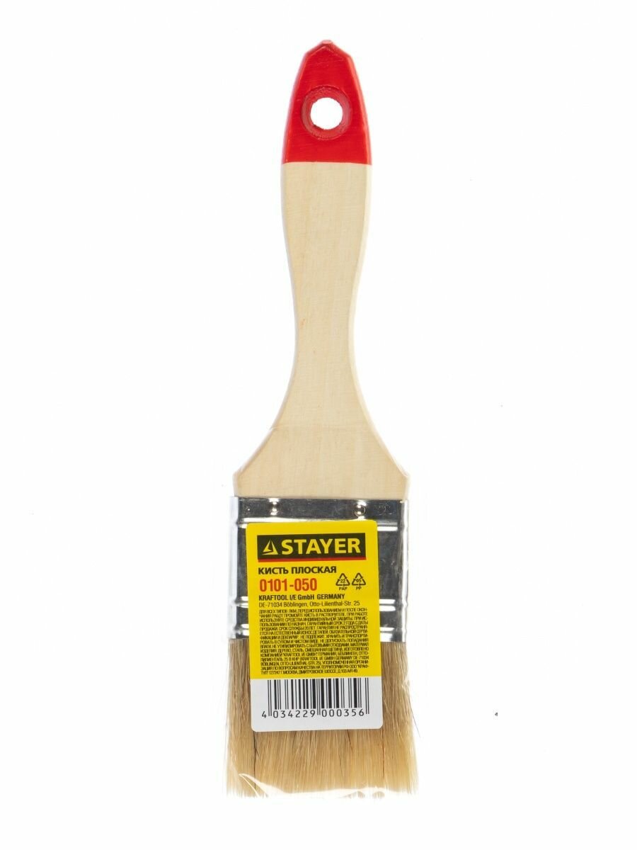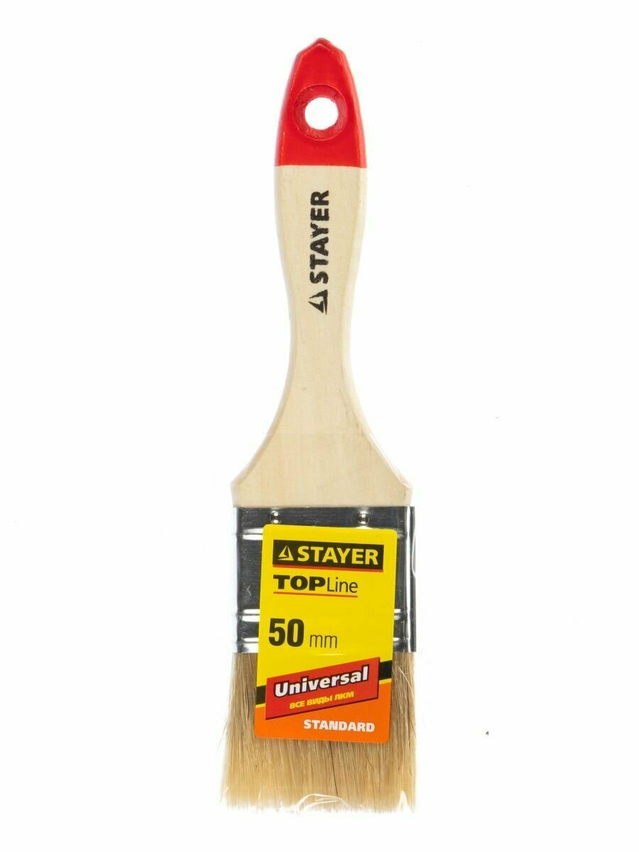 STAYER 0101-050 Кисть плоская ″UNIVERSAL-STANDARD″, светлая натуральная щетина, деревянная ручка, 50 мм