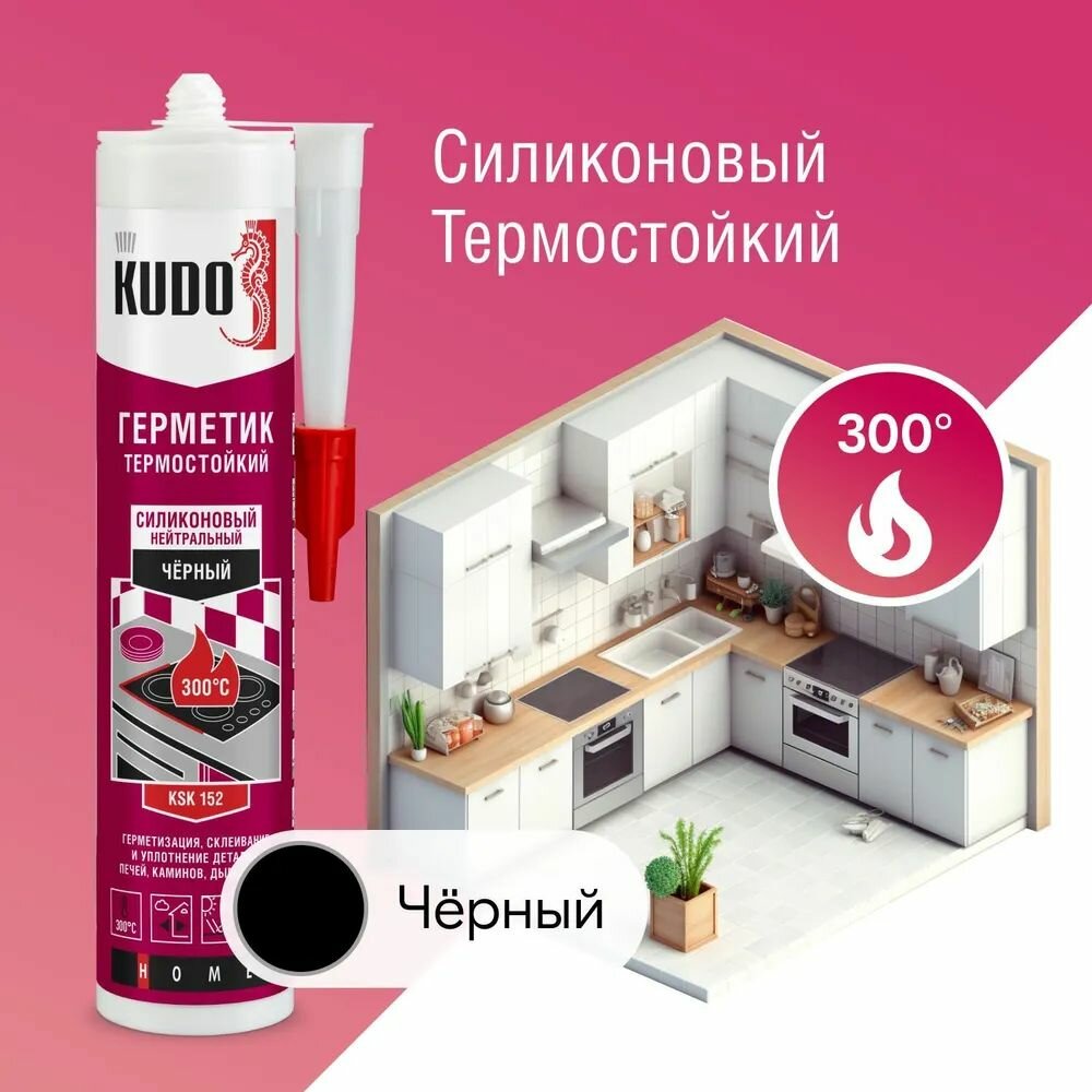 Герметик KUDO KSK-152 силиконовый нейтральный высокотемпературный,черный, 280 мл KUDO KUDO Kudo