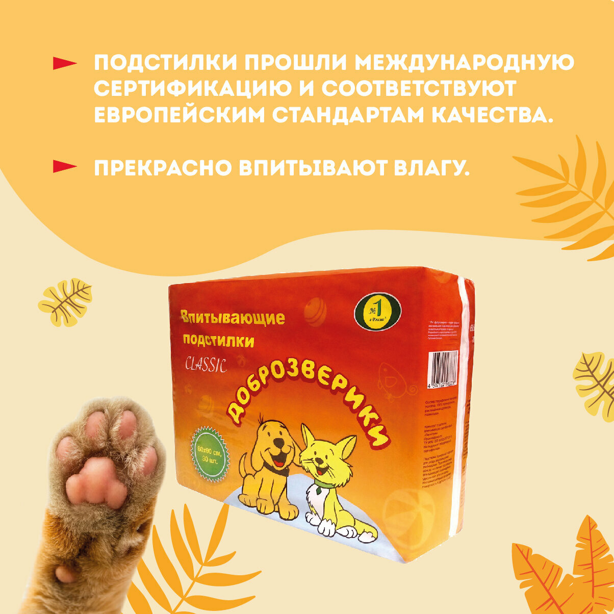 Пеленки одноразовые впитывающие для животных Доброзверики, 60х90 см. 30 шт. Classic интересное: