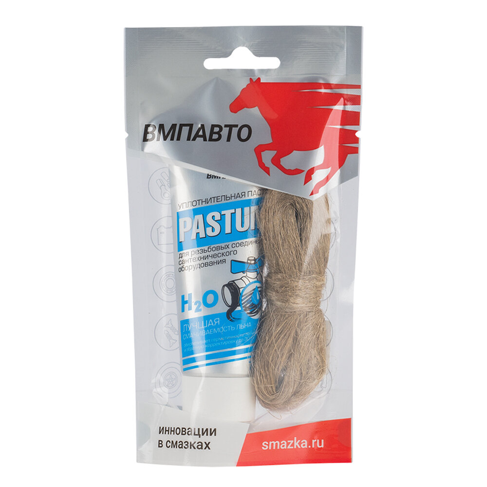 Паста ВМП авто "Pastum H2O", сантехническая, для уплотнения резьбовых соединений, тубик, комплект со льном, 70гр.+15гр.