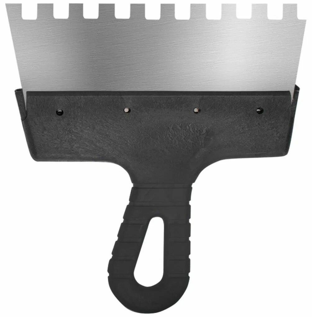 Шпатель из нержавеющей стали, 200 мм, зуб 10х10 мм, пластмассовая ручка Сибртех