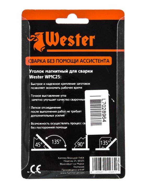 Уголок магн.сварочный WESTER WMC25 45/90/135 до 11.5кг, интересное: