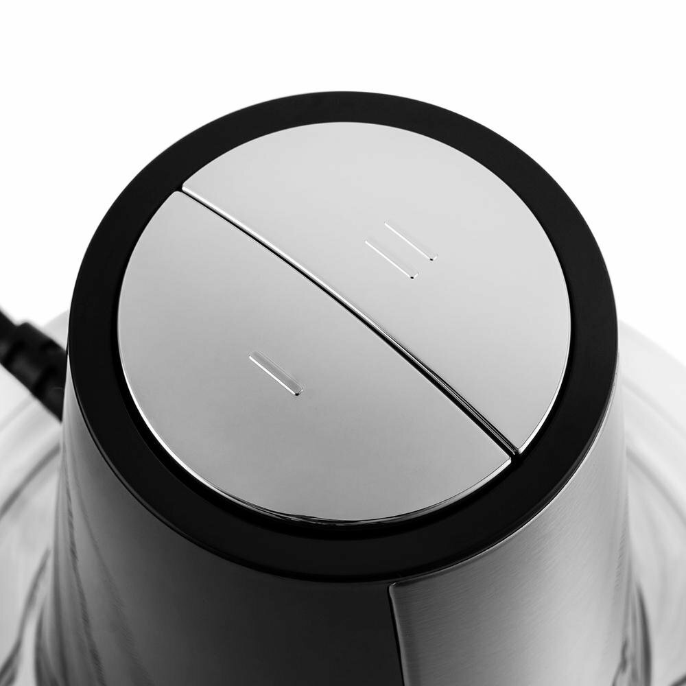 | Отзыв: | Долго искал измельчитель. Хотелось, чтоб он имел стильный дизайн, оптимальный объём чаши, 2 пары ножей. Всё это есть в данном измельчителе. Внешний вид, черно-серебристый очень вписался ко всей моей кухонной технике, большой объём чаши, острые ножи с надёжным креплением. Имея две скорости отлично измельчает, мясо, орехи, грибы.