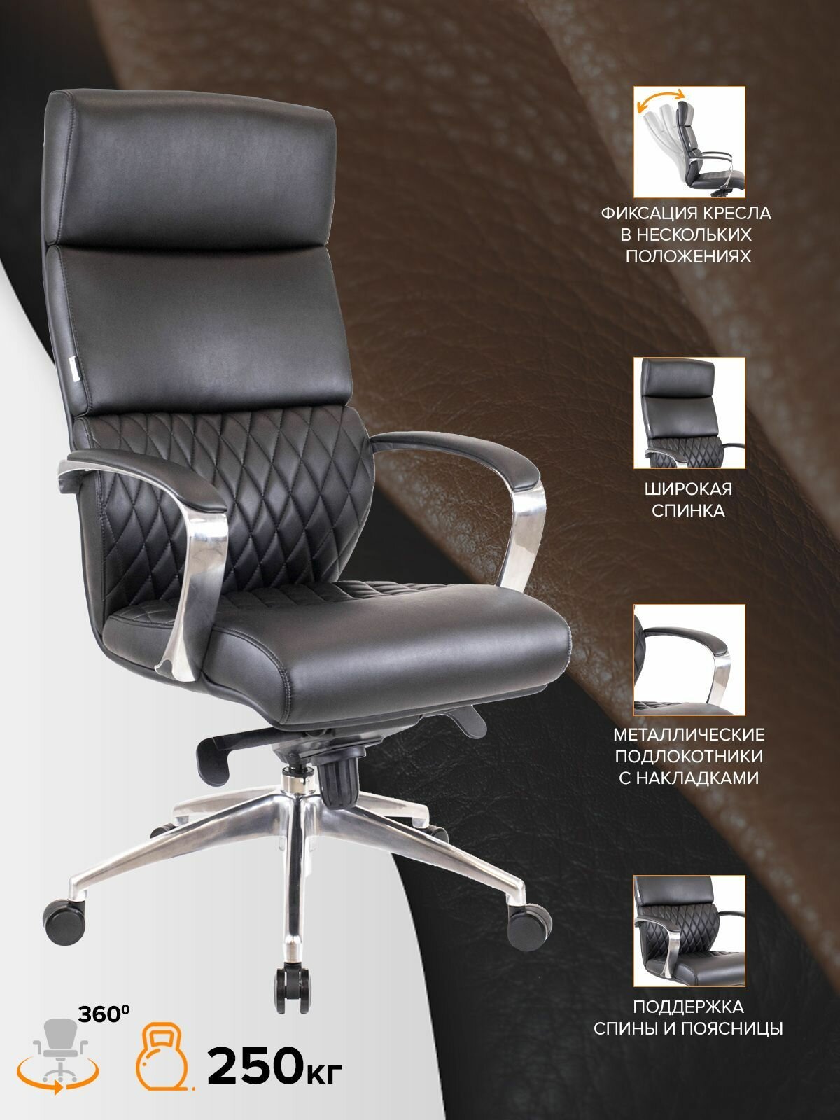 Компьютерное кресло офисное рабочее для руководителя Everprof President Кожа Черный