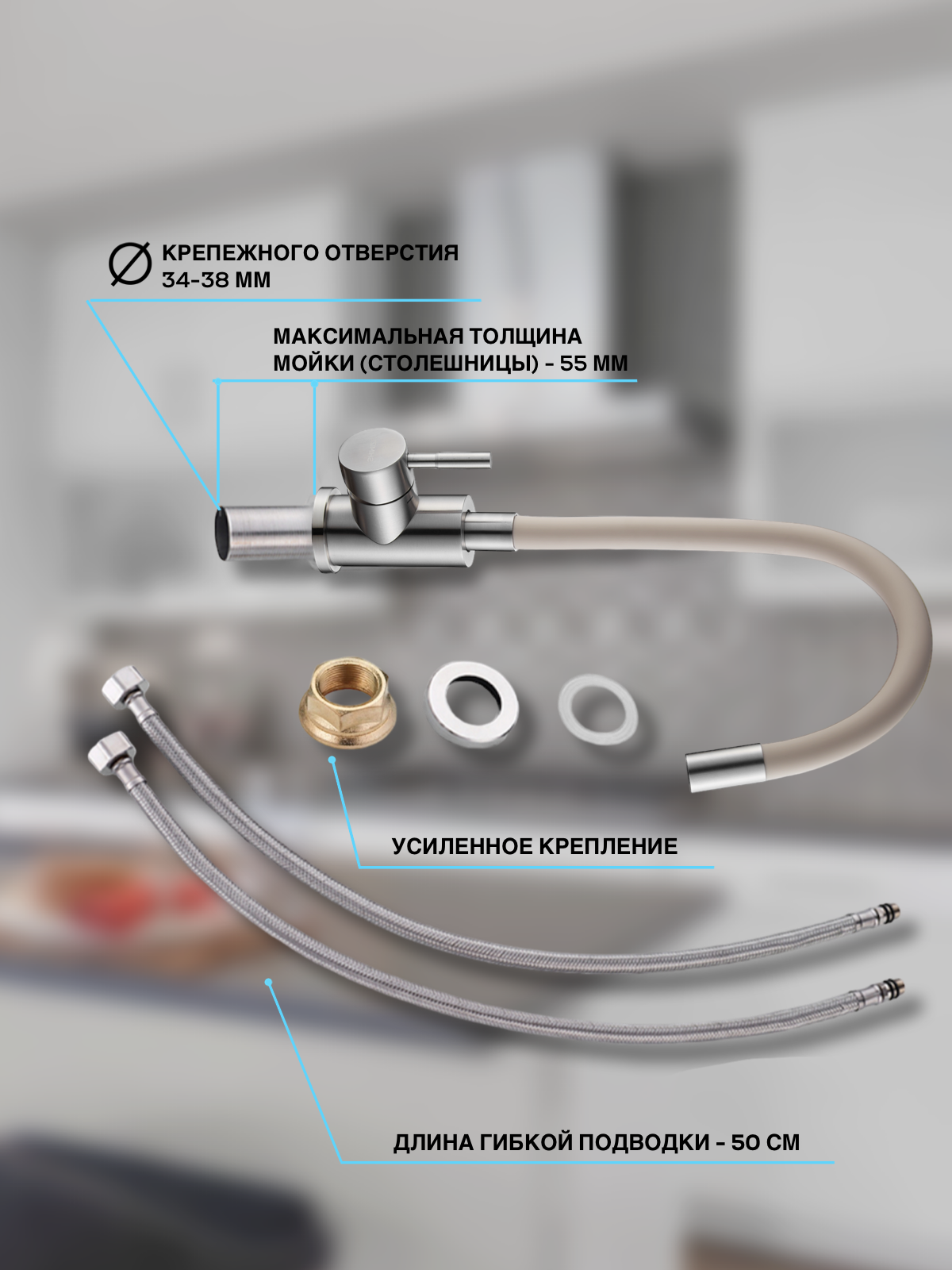 Cмеситель для кухни SHIMIZU с гибким изливом, серый