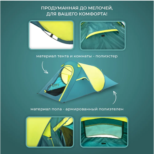 | Отзыв: | Нормальная палатка за такую стоимость. Ночной дождь пережила. Швы целые, не промокла |