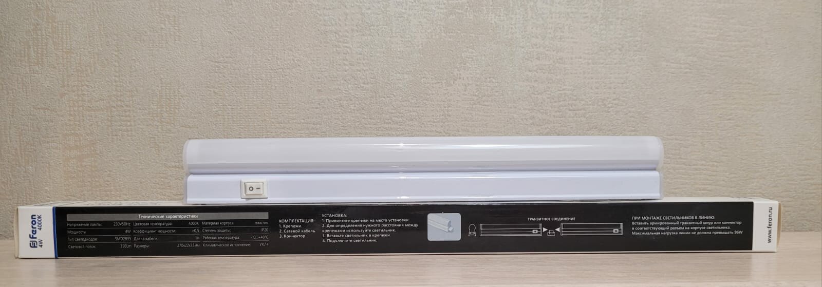 СохранитьСветильник светодиодный ДПО-4w 4000К 350Лм пластик Т5 IP20 с выключателем и сетевым шнуром (AL5038) | код. 27945 | FERON (4шт.в упак.) интересное: