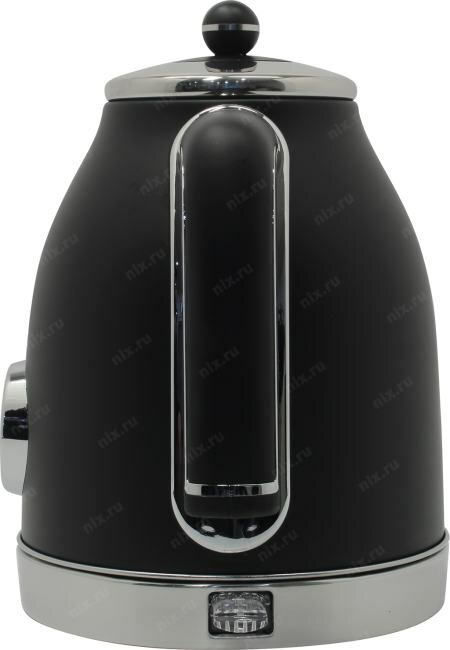 Очень стильный дизайн. Черный цвет отлично сочетается с металлическими деталями. Покрытие чайника очень приятное на ощупь, матовое. Корпус металлический, а не пластиковый (один из важнейших критериев выбора). Чайник довольно тихий, в сравнении с аналогичными по мощности электрическими чайниками. |