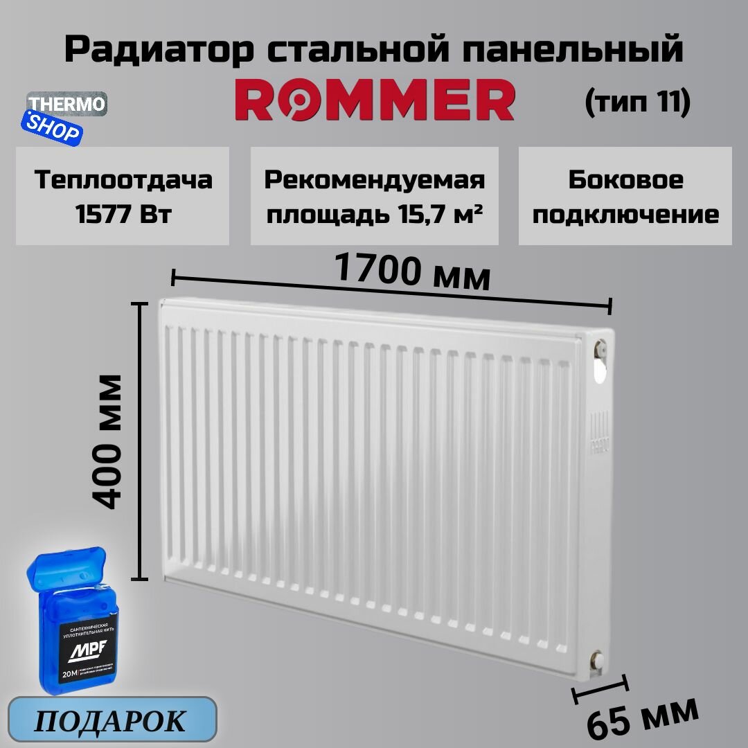 Радиатор стальной панельный ROMMER боковое подключение Compact 11/400/1700 RRS-2010-114170
