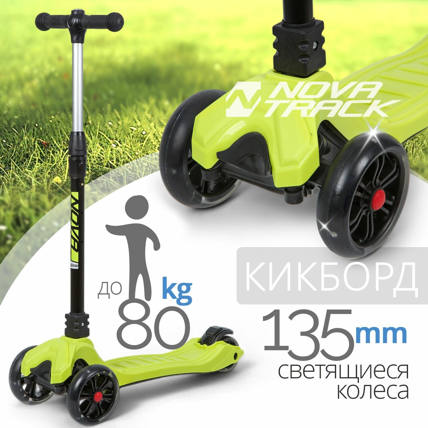 Самокат NOVATRACK Rainbow 135Pro.Rainbow.LM20, лимонный