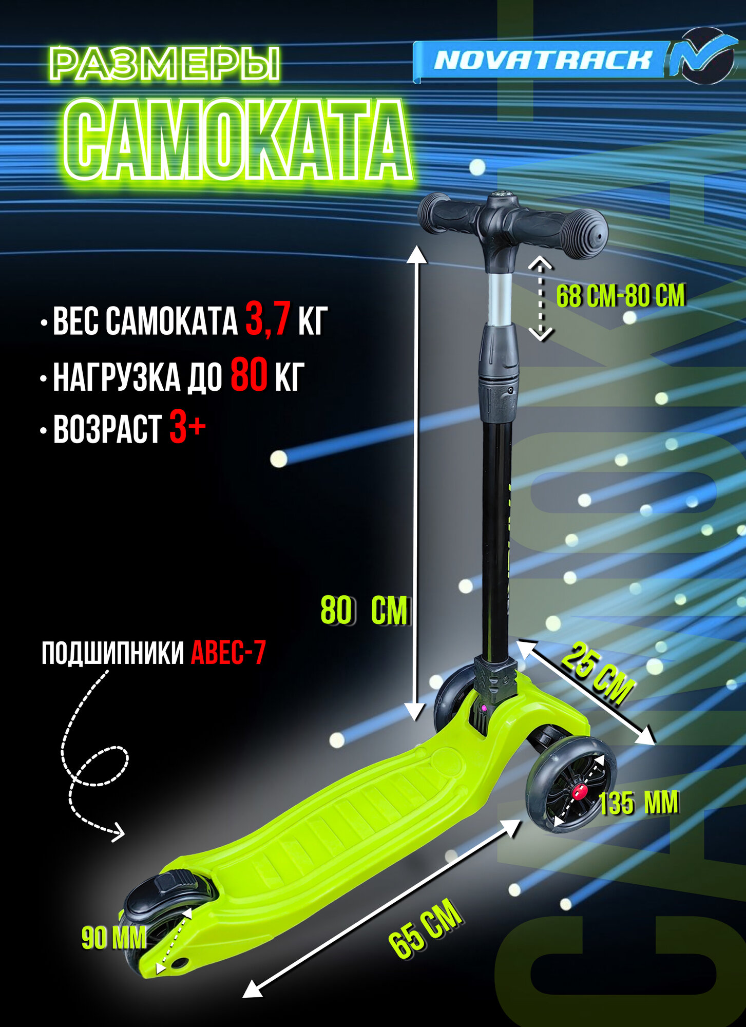 Novatrack 135PRO.RAINBOW.LM20 Кикборд лимонный 141028