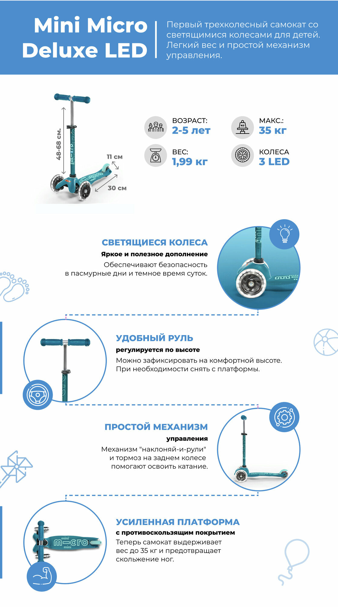 СохранитьСамокат Micro Mini Deluxe LED Aqua (Аква) интересное: