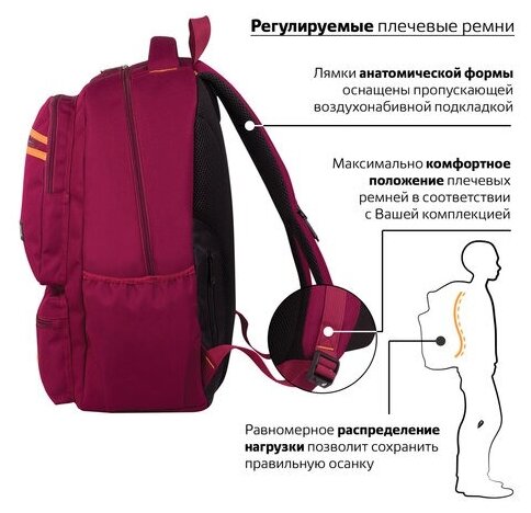 Рюкзак BRAUBERG STATES универсальный, карман-антивор, "Jersey", бордовый, 46х31х14 см