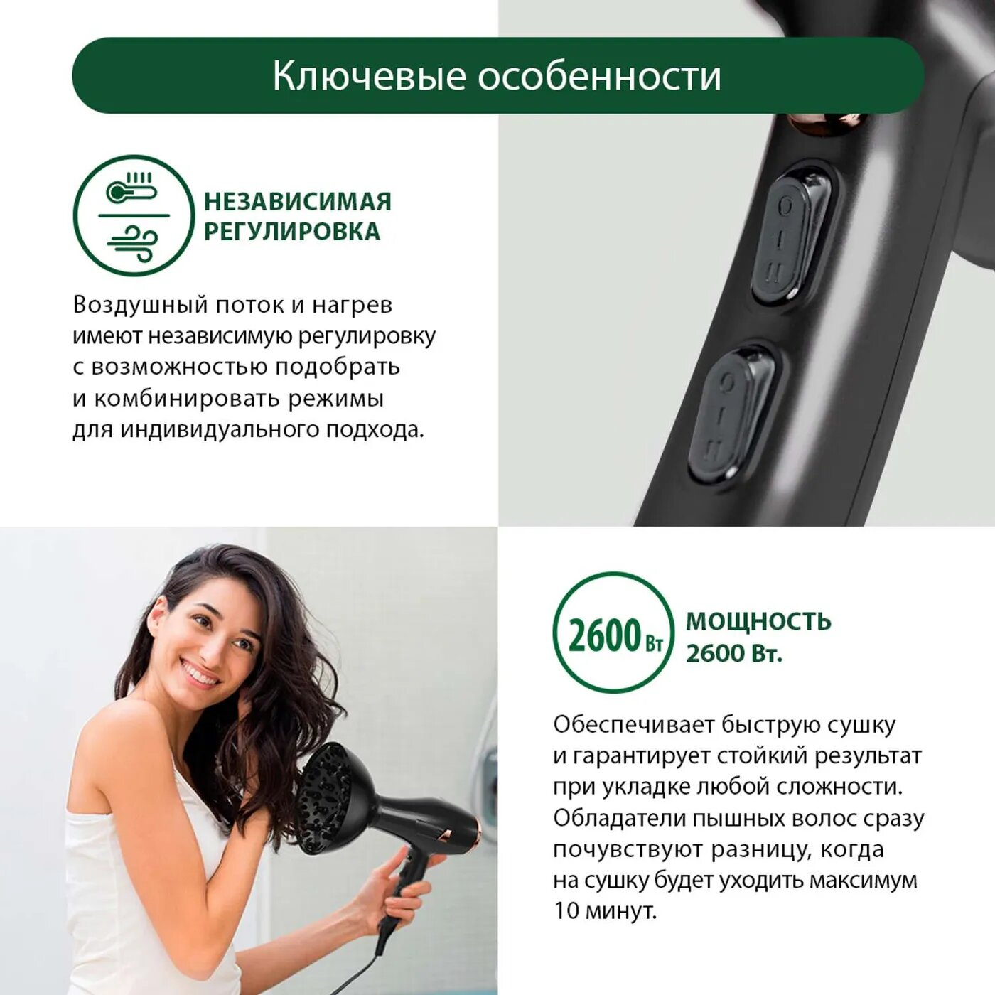 | Плюсы: | Мощный фен. Хороший большой диффузор.