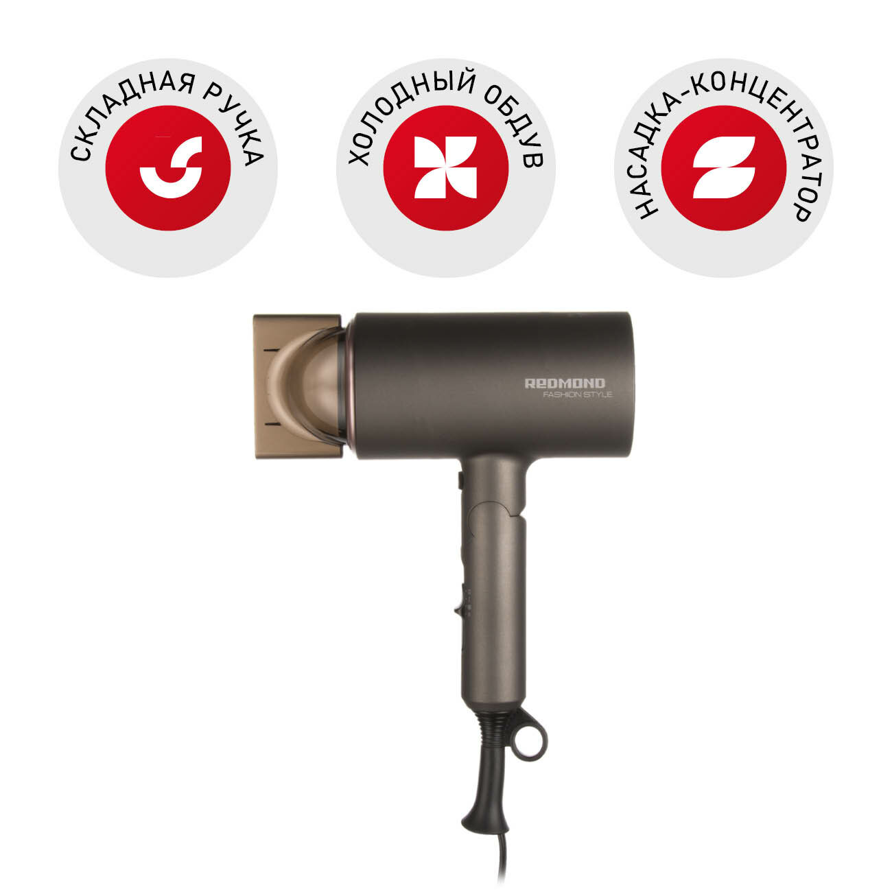 Фен REDMOND RF-534, дорожный, 1600Вт, черный