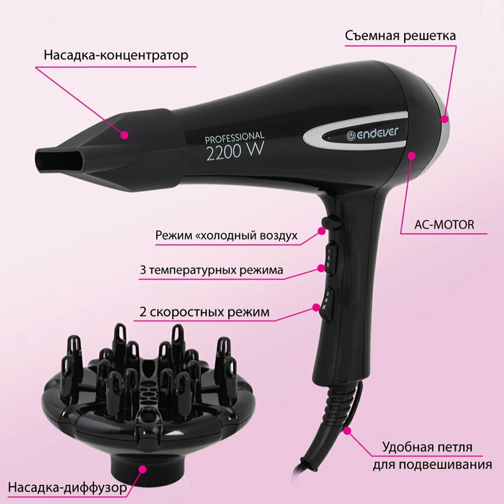 Фен ENDEVER Aurora 474, 2200Вт, черный