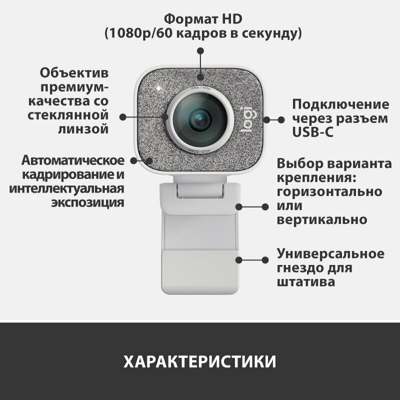 Веб-камера Logitech StreamCam White, белый/серый, 1542276